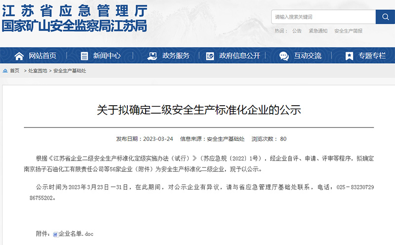 后續(xù),我公司對評審組提出的不符合項(xiàng)按照隱患整改“五定”原則制定了整改方案并落實(shí)整改。31日,評審組再次組織專家對不符合項(xiàng)的整改開展復(fù)查,評審組確認(rèn)了所有不符合項(xiàng)整改閉環(huán)。2023324日江蘇省應(yīng)急管理廳網(wǎng)上發(fā)布公示。